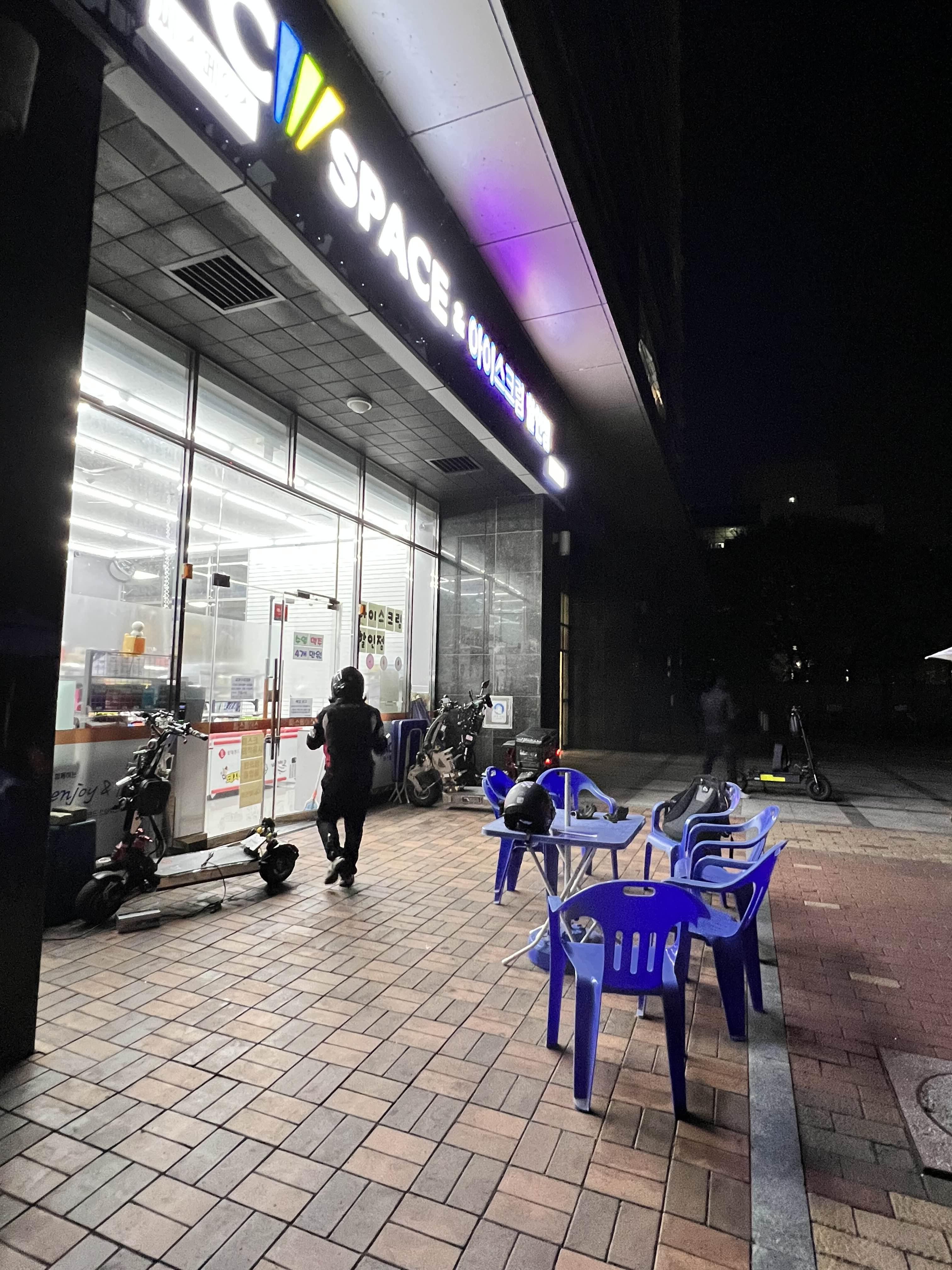 그래도 그렇게 돌아오는 길목도 나쁘지 않았고, 오는 도중에 CU 편의점 한 곳 들러서 앞쪽에 기체들 주차하고 쉬어가기로 했다. 할랑 형이 또 사준다고 하셔서 맛난거 없나 찾다가 보인 게 '크림파스타핫도그'..?? 느끼한 것도 좋아하는 나로선 궁금한 맛이라 사봤는데, 음....맛은 뭐 괜찮긴 한데 먹기가 너무 힘들었... 소시지가 중간에 하마터면 땅으로 탈출할 뻔한 무서운 이야기... 그렇게 쉬어가며 이야기를 나누다 다시 씨스페이스 편의점으로 복귀했다.