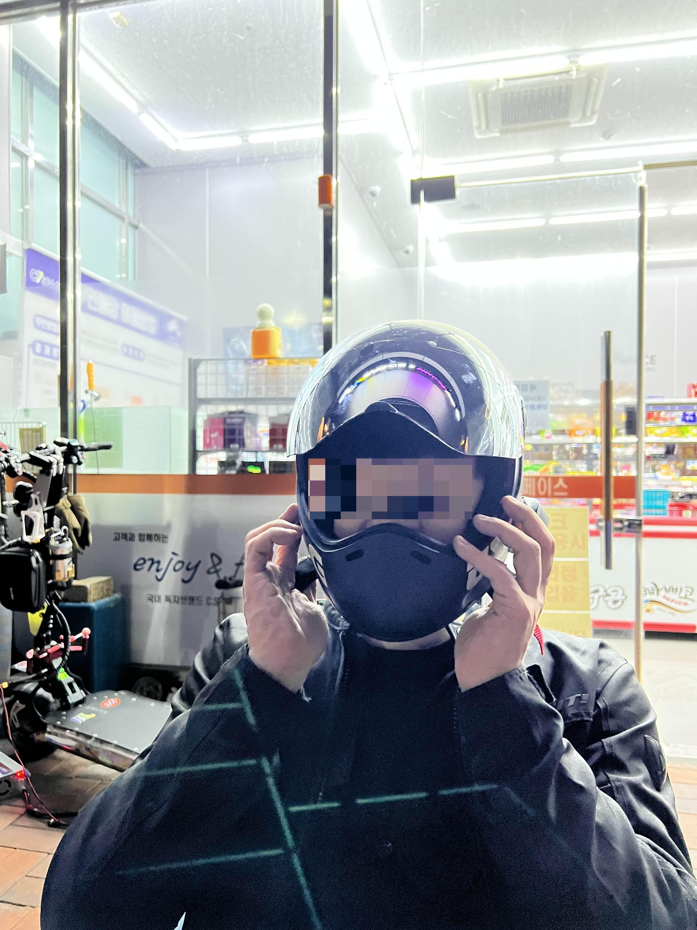 퇴근 후 집 복귀했다가 꼼이랑 잠깐 놀아주고 씨스페이스로 이동~!! 할랑 형, 만두 동생, 보보 동생, 그 이외 방장 형과 모르는 분들이 계셨다. 잘 생긴 할랑 형이 헬멧 구매에 열심이셔서 ㅋㅋ 구매 도움드릴 겸 tsg 착용 시켜드렸는데, 잘 생긴 얼굴 함부로 공개할 수 없어서 아쉽...